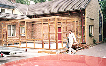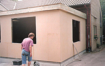 Fachwerk mittels Trockenputzplatten verkleidet, Innenraum mit Gipskartonplatten