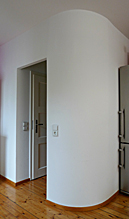 Akustikbau, halbrunder Raumteiler Ständerwerk mit Gipskartonplatten
