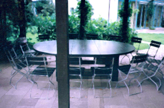 Bank aus Lärchenholz, Gartentisch gefärbtes Mahagoniholz