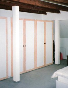 | verschiedene Variationen mit Schiebetüren, Drehtüren, Dachschrägenschrank